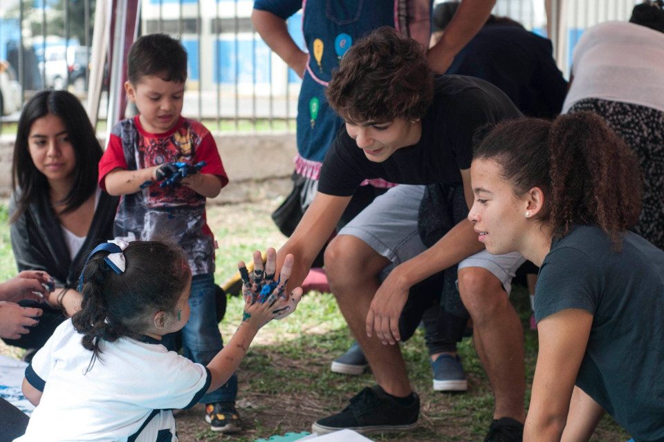 Los chicos prepararon juegos y dibujaron con los más pequeños. Fue una mañana linda y muy divertida.